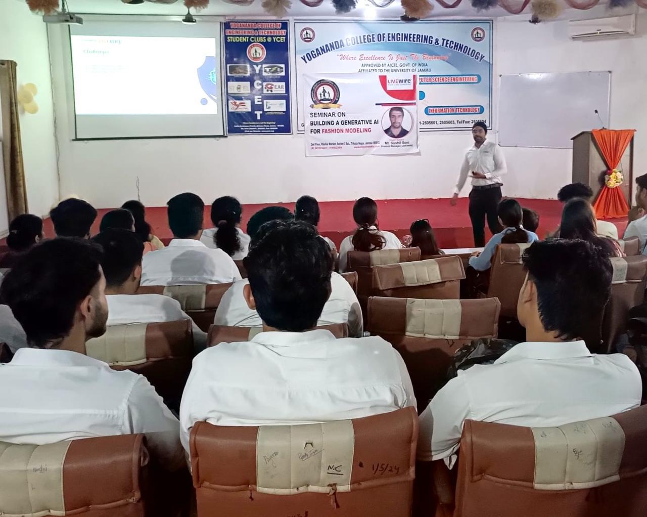 he Department of Computer Science Engineering at Yogananda College of Engineering and Technology (YCET) organized a session on “Building a Generative AI for Fashion” for CSE students from YCET and BCA students from IMS College. The session was conducted by Livewire, a company known for its global skill development programs in emerging technologies like AI, data science, machine learning, IoT, and blockchain.